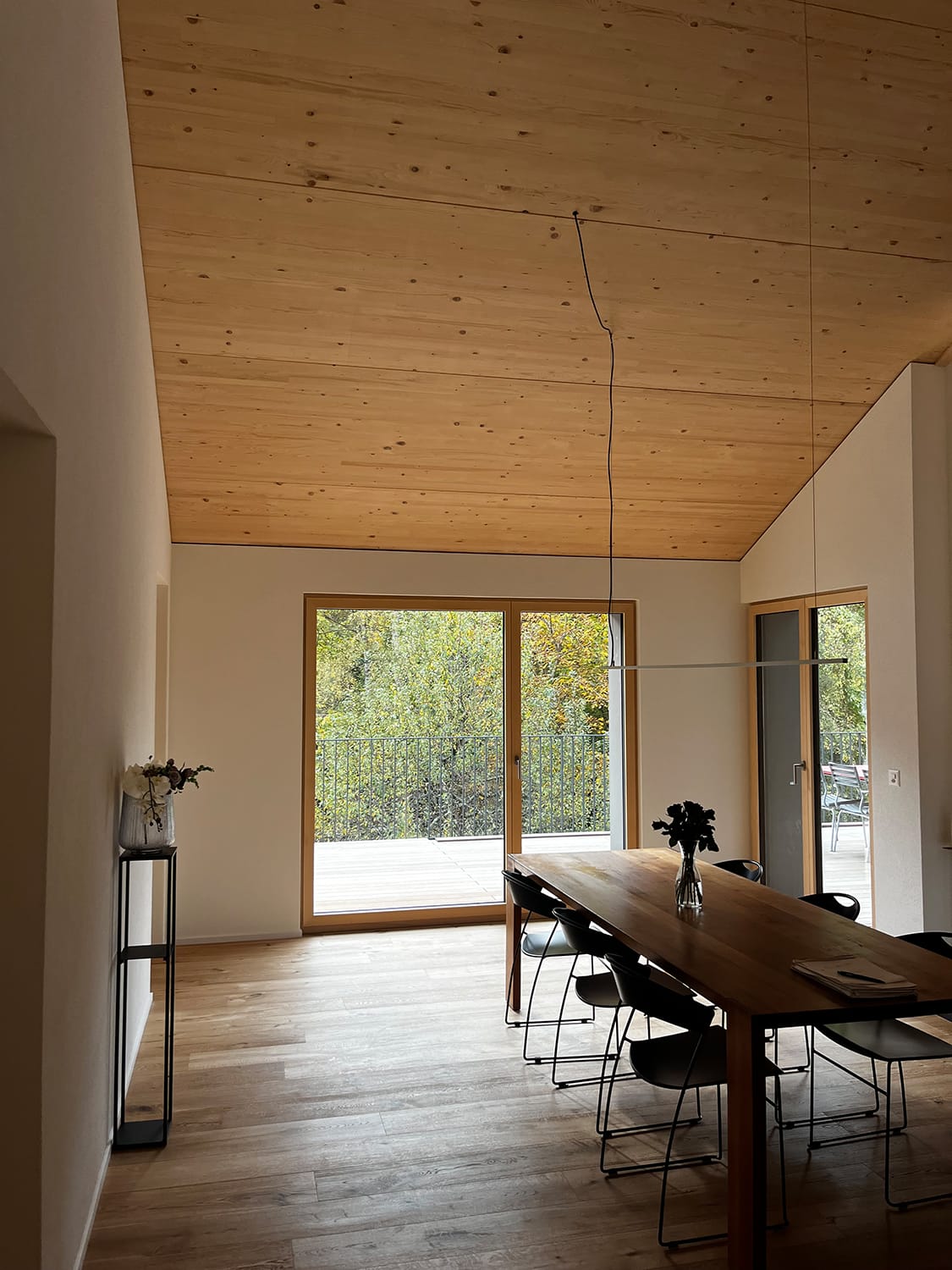 - Gestalterisch klar: Gleichmässige Flächen, saubere Fugen und passende Holzarten.
